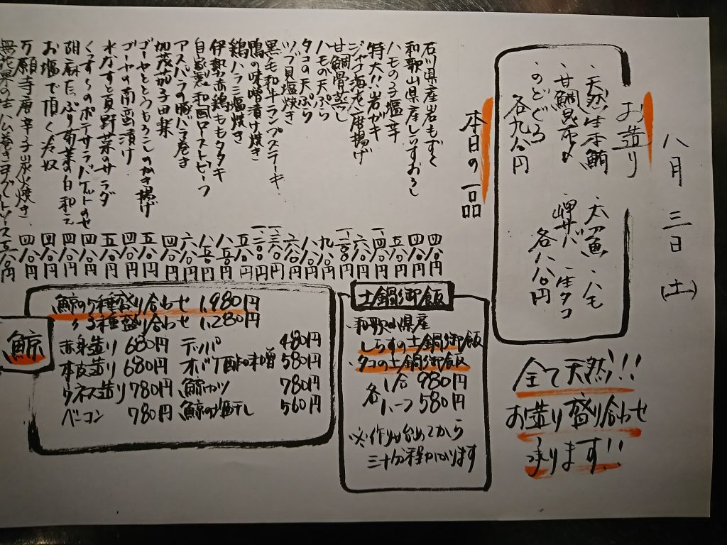 8/3(土)のメニューです。