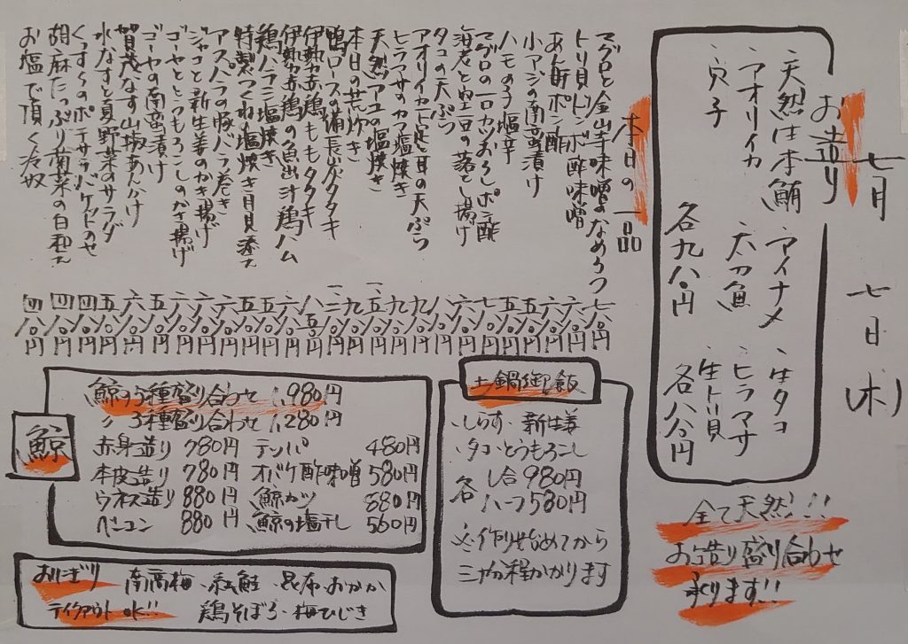 7/7(木)本日のメニューです❗